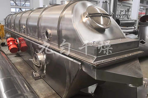 物料自进料口进入机内,在振动力作用下,物料沿水平流化床抛掷,向前连续运动,热风向上穿过流化床同湿物料换热后,湿空气经旋风分离器除尘后由排风口排出,干燥物料由排料口排出。
